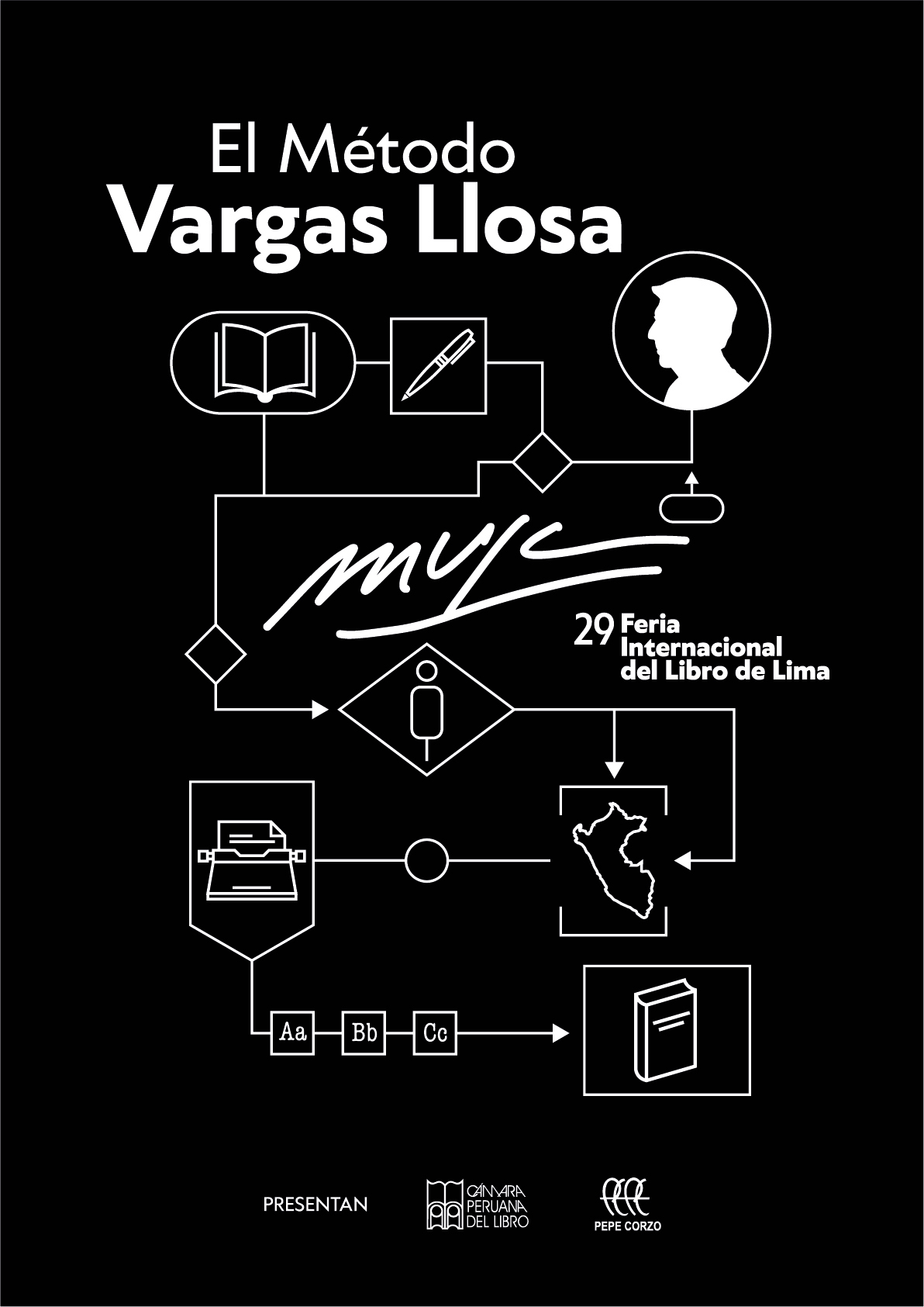 El método Vargas Llosa es una experiencia inmersiva que invita al visitante a sumergirse en el proceso creativo del escritor, desde el germen inconsciente de la inspiración hasta la culminación de la obra publicada. No se trata de una biografía ni de una exposición retrospectiva: es un viaje sensorial por el laboratorio mental del autor. Una travesía por su disciplina, su método, su imaginación, y sobre todo, por el modo único en que convirtió la experiencia vivida —muchas veces traumática— en materia literaria. El recorrido se despliega dentro de un espacio oscuro, interconectado visualmente por líneas blancas inspiradas en diagramas de flujo. Estas líneas simbolizan la racionalidad profunda que, en tensión con la imaginación, estructura la narrativa de Vargas Llosa. Cada zona representa un momento clave de su proceso creativo, que el visitante explora no como espectador pasivo, sino como testigo dentro de una mente en ebullición.